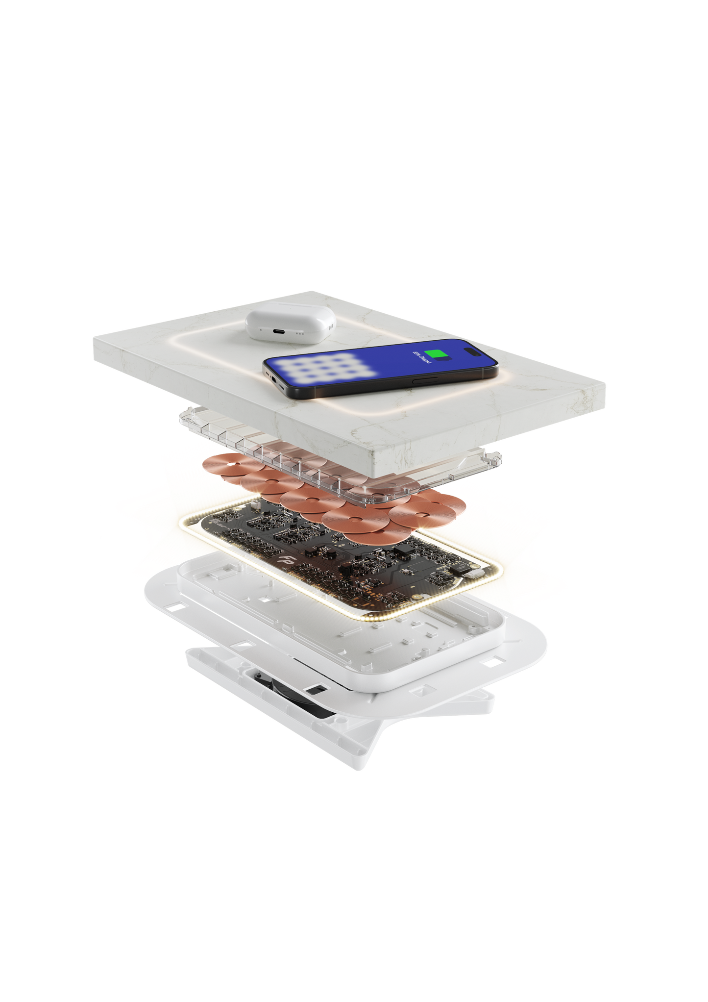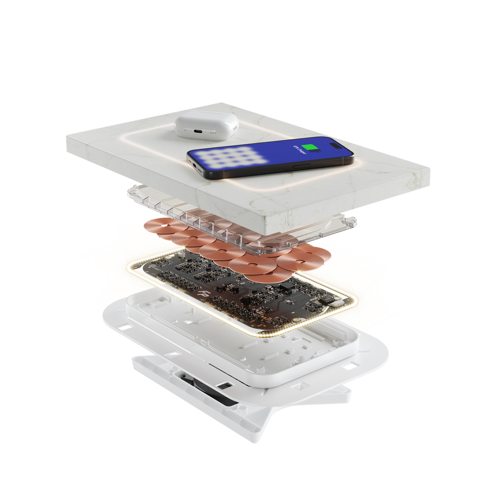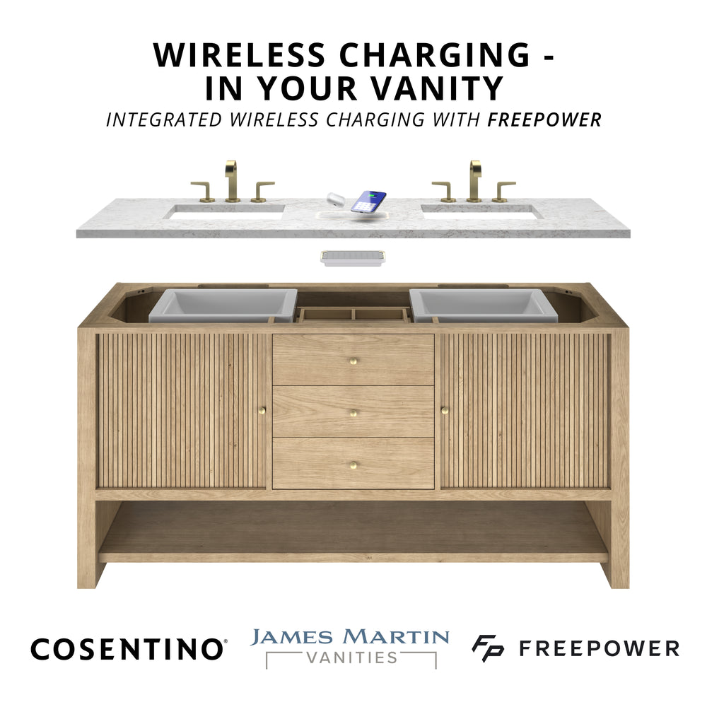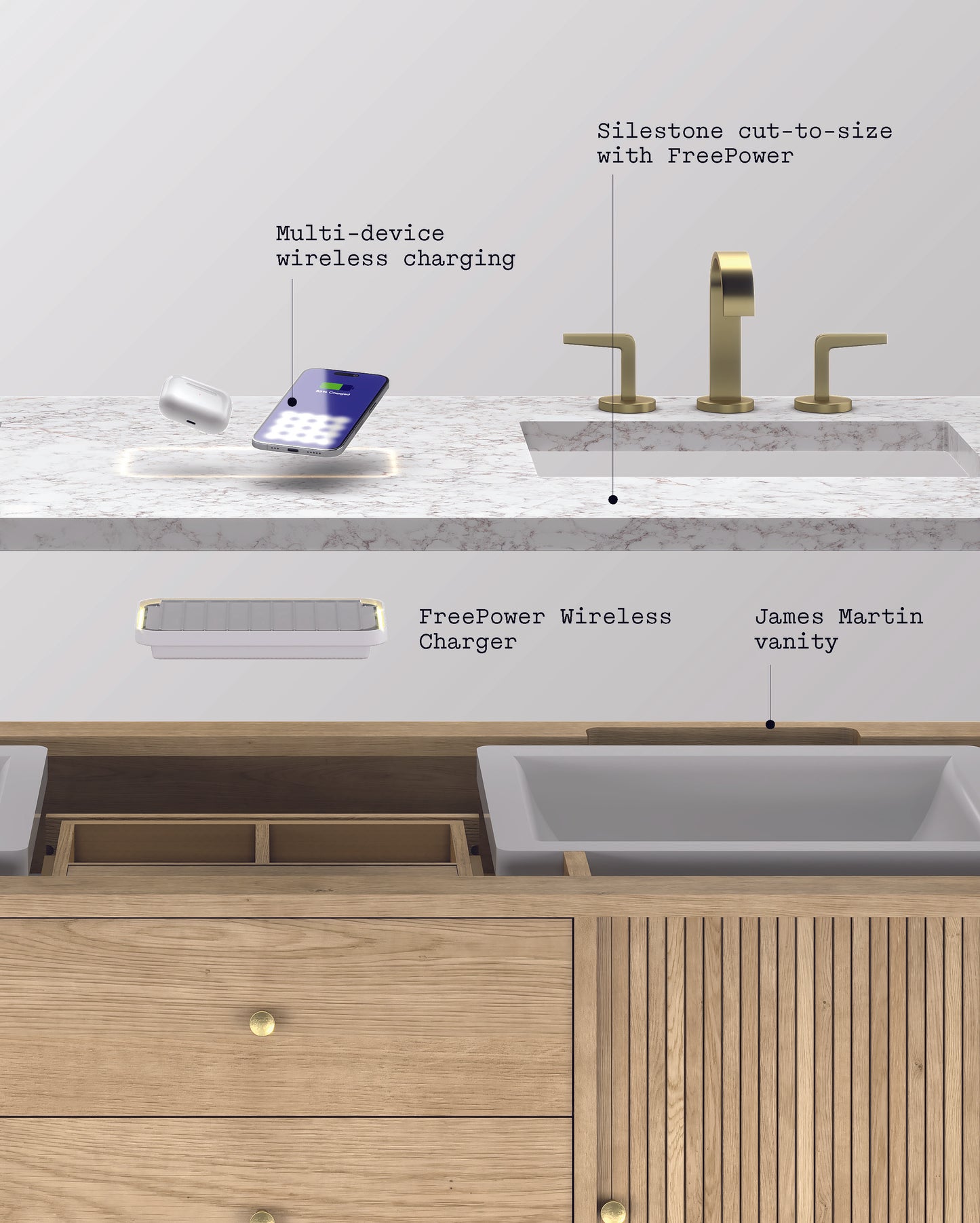 Your daily routine just got easier with the convenience of wireless charging in your bathroom vanity - integrating Freepower's state-of-the-art technology with stunning countertops by Cosentino. This innovative collaboration is set to redefine the industry, bringing unparalleled elegance and futuristic functionality to modern living.