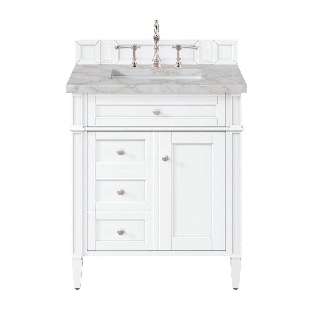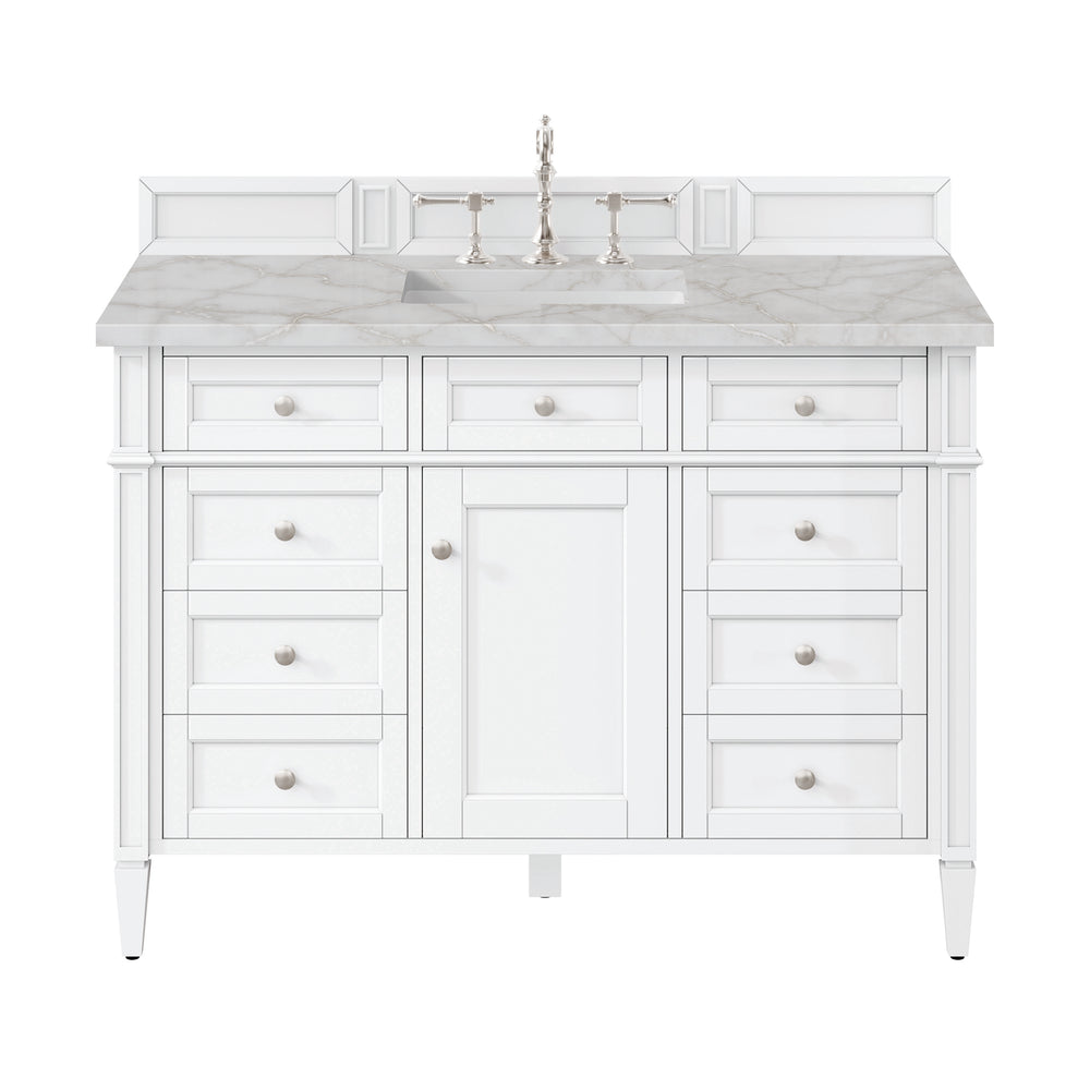 Our most popular collection, the Brittany Collection by James Martin Vanities was thoughtfully crafted to combine both traditional and modern style. The tapered legs are a recognizable nod to the past, while the straight lines and shaker-style detailing suggest a more contemporary aesthetic. Available in an array of beautiful finishes, Brittany's versatile design blends seamlessly with a wide range of interior styling, while the expansive storage options make this collection a functional solution for any bathroom.